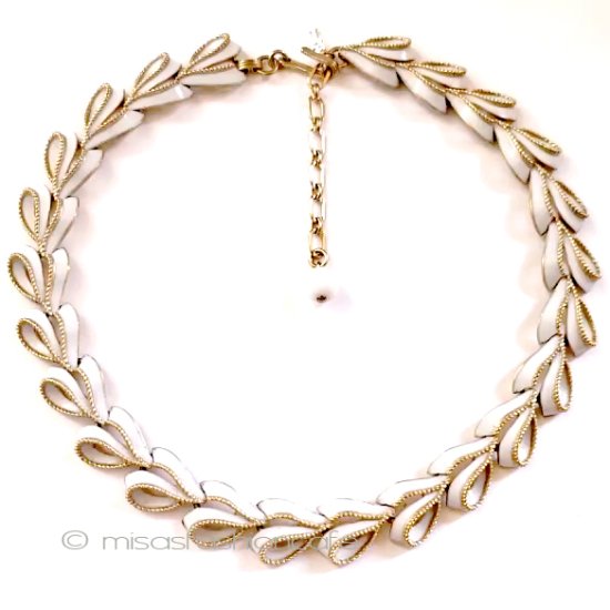 デザイン:  ホワイト・エナメル装飾Goldリボン。