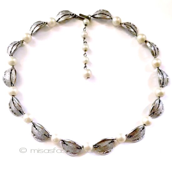 商品: ネックレス。 ブランド: Trifari トリファリ (刻印あり)。 デザイン: パールxシルバー・パーティースタイル。 サイズ: 42cm。 状態: 大変良いVintageコンディションです。
