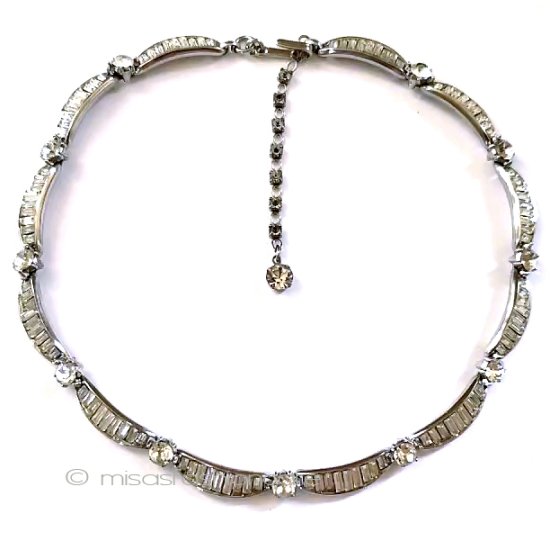 商品: ネックレス。 ブランド: Trifari トリファリ (刻印あり)。 デザイン: クリアークリスタルの全面パヴェ装飾。 サイズ: 42cm。 状態: とても綺麗なVintageコンディションです。
