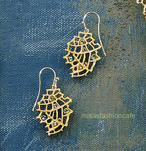 商品: ピアス デザイン: Fan Coral (うちわ型珊瑚)。 素材: 24Kゴールド&シルバーレイヤーのブロンズ・スワロフスキー。 生産国: Made in USA