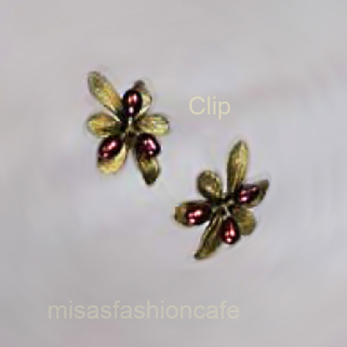 商品: クリップ式イヤリング ブランド: Michael Michaud マイケルミショー。デザイン: Barberry (バーベリーの木)。素材: 真珠・ハンドパティーナ(熱処理仕上げ)ブロンズ。生産国: Made in USA