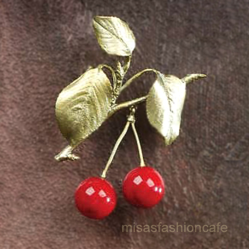 マイケルミショー ブローチ 天然ヒスイのさくらんぽ。
